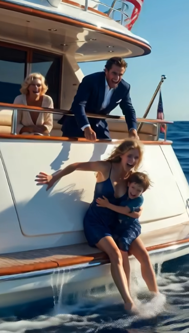 On our private yacht, twenty miles off the coast of Boston, my five-year-old son Lucas and I were suddenly pushed from behind. I stumbled, my hip slamming against the railing, and spun around just in time to see the faces of the people I loved most in the world twisted into masks of cold calculation.