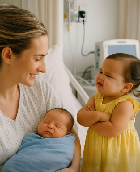 I was lying in the hospital room with the newborn in my arms when my husband walked in with our daughter so she could meet her brother. My little girl stopped by the bed and stared for a long, very long time at the tiny bundle wrapped in the blue blanket.