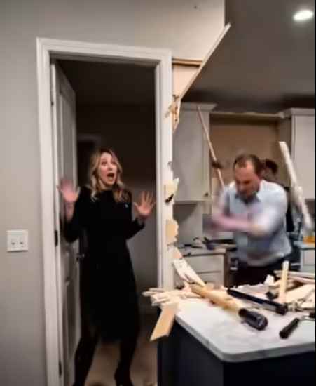 Ray stood in the center of my beautiful kitchen, sledgehammer in hand, bringing it down on my quartz countertop. The Calcutta Gold surface I’d spent months selecting was already spiderwebbed with cracks. Behind him, Derek’s crew was dismantling my custom cabinets, wrenching doors off hinges, pulling drawers from their soft-close slides.