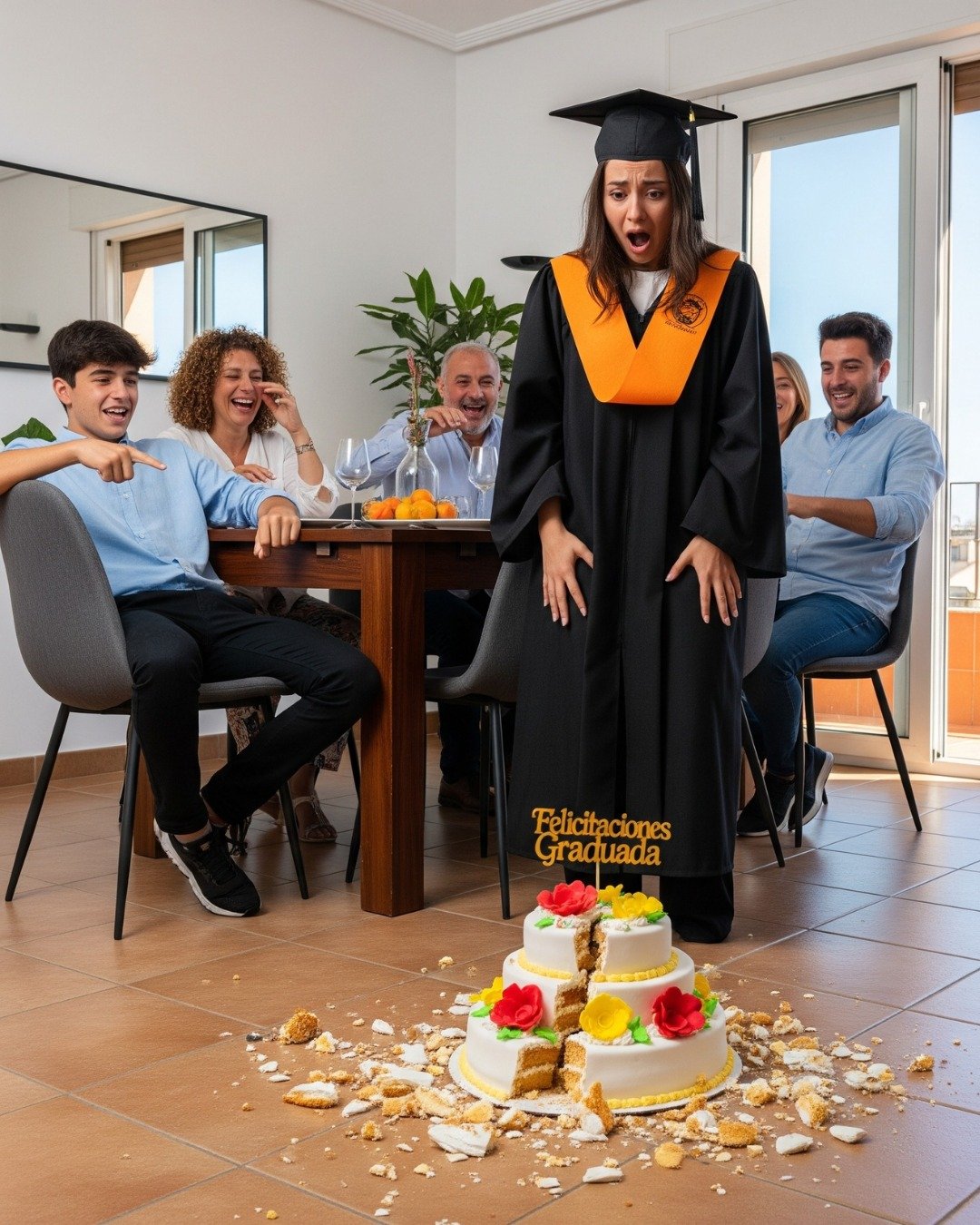 The sound of the cake crashing against the tiles was followed by laughter all around the table. Not nervous laughter, not awkward laughter… but genuine laughter. Oliver, triumphant, said,