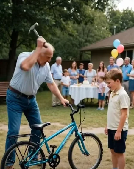 The anger flared up inside me like a flame touching gasoline. I turned back to my parents. “You don’t have the right to make my kid share his bike,” I shouted, pointing at the wreckage. “And you definitely don’t have the right to destroy his property! Are you insane?”