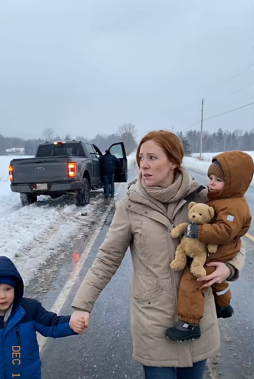 A black pickup truck—a beast of steel and malice—came thundering around the bend behind us. I refused to turn, my spine turning into a rod of iron. I pulled Ethan into the shadow of my hip. The truck decelerated, its tires crunching the ice as it paced us with predatory patience.