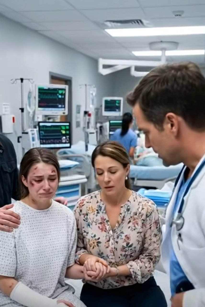 Linda didn’t look at the door where her broken daughter lay. She didn’t ask the doctors if I was okay. She threw herself at the police officer, grabbing his arm.
