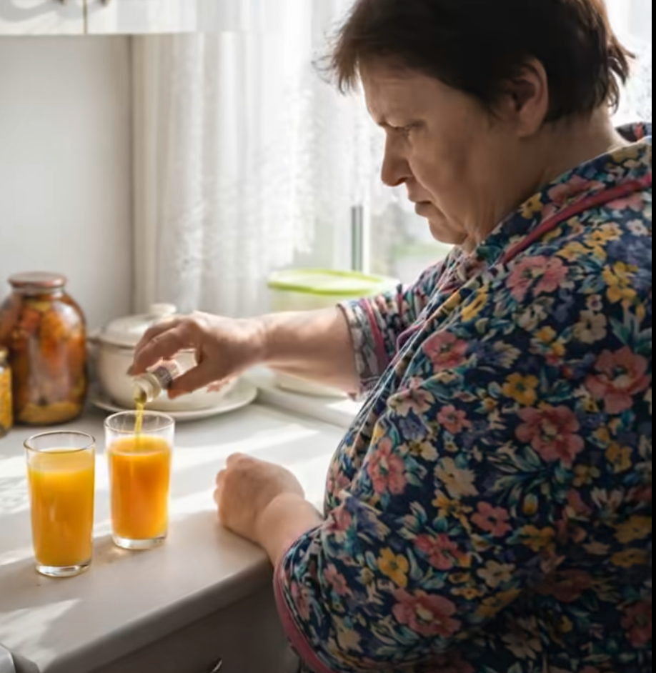 She leaned closer to me, as if to adjust a napkin, and very quickly poured something into my glass of juice. The movement was almost unnoticeable, but I saw it clearly, even though no one else noticed it. I knew for sure — she had put something into my glass.