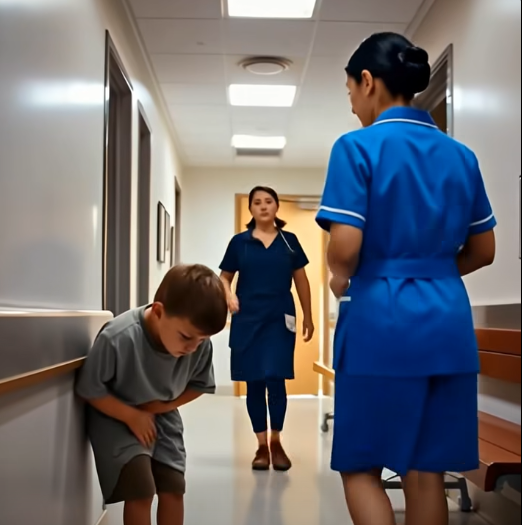 Late that evening, the emergency room doors swung open again, and a small boy of about nine entered. He was alone, wearing old, oversized clothes. His face was pale, his lips trembled, and his hands clutched his abdomen tightly.