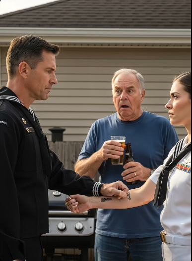I came straight from a change-of-command in DC, still in service dress whites because I’d run out of time and excuses to stop at quarters. The uniform was a mistake for a barbecue, but I was too tired to change and too stubborn to hide. The sun turned the brass on my ribbons into small signals. The day smelled like smoke and green things and the ache of old scripts.