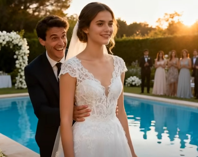 I stood beside my father, dripping water, dress sagging with the weight of ruined lace. My mother rushed over with towels, her hands shaking as she tucked soggy strands of hair behind my ears. Her eyes—usually so warm—held something sharp now. Something protective.