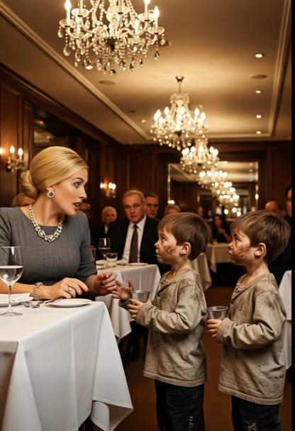The taller twin flinched at the sharp sound of the fork, then straightened his small shoulders. “We’re sorry, ma’am,” he said quickly, his voice tense with a practiced apology that broke her heart. “We’re just… we’re hungry. We don’t want money. Just the food you’re not eating.”