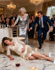 The crack of impact echoed. Elena collapsed, shock twisting her features, hands gripping her stomach. Blood stained her gown.